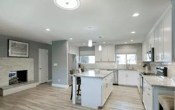Key moves included opening the kitchen and living area, restoring the home’s double-sided fireplace to its midcentury roots, and layering in warm, modern finishes throughout. Original cabinetry was reused and refinished where possible, allowing the budget to be directed toward meaningful upgrades and improved functionality.